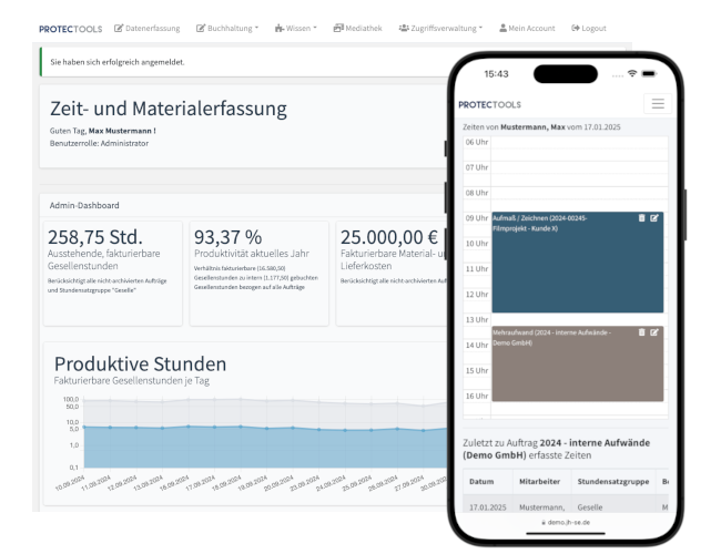 Behalte den Überblick über alle Aufträge, Zeiten und Materialien